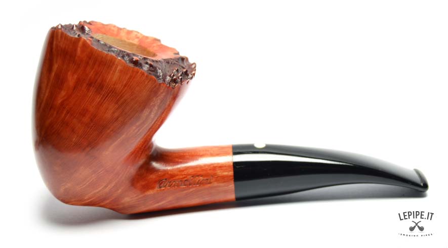This Freeform Armellini pipe looks as though it were sculpted by nature itself, beautifully balancing soft curves with untamed detail. The raw, bark-edged rim provides a striking contrast to the smooth, flame-grain briar surface.