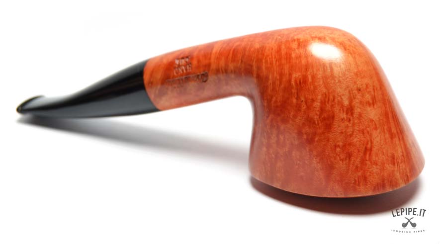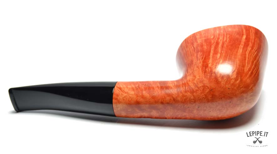 The warm, light finish highlights the briar’s uniform grain, while the glossy black methacrylate stem fits seamlessly into the shank, continuing the pipe’s flowing silhouette. Its generous dimensions — 166 mm in length and 54 mm in height — make it ideal for extended smoking sessions, while still comfortable to hold.