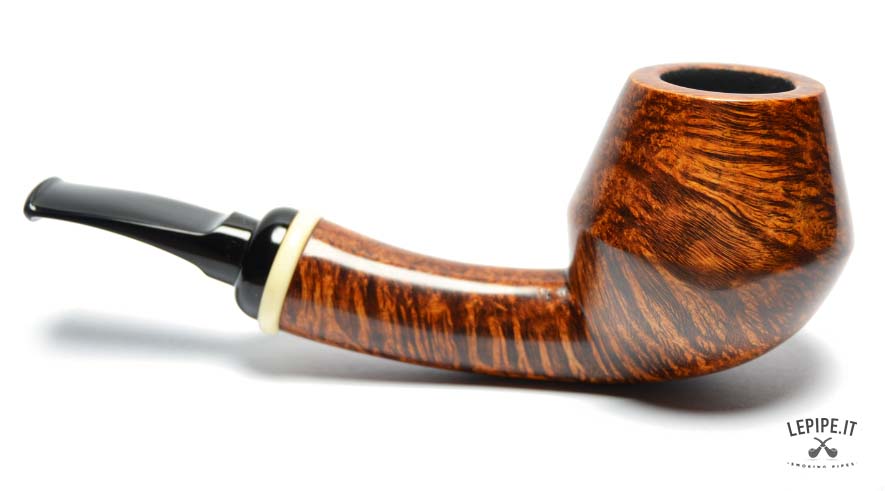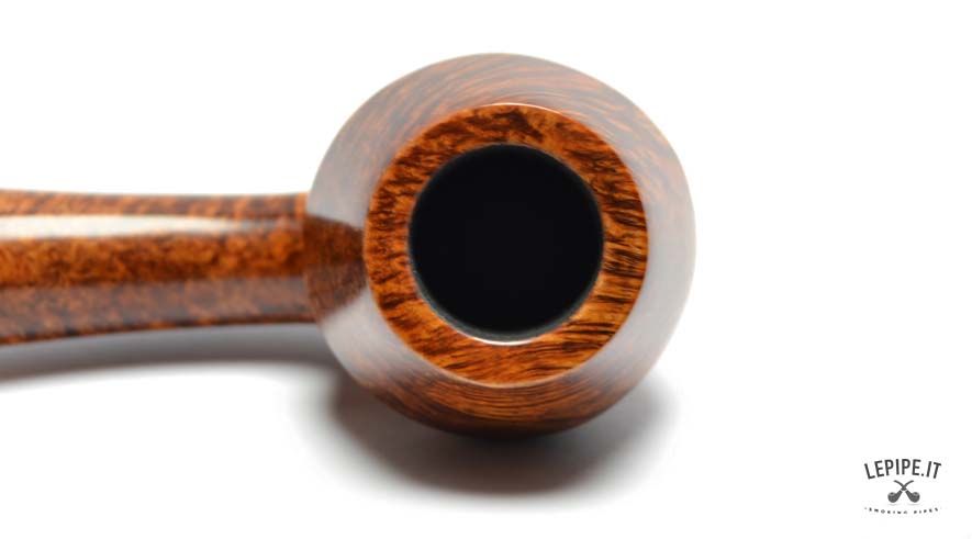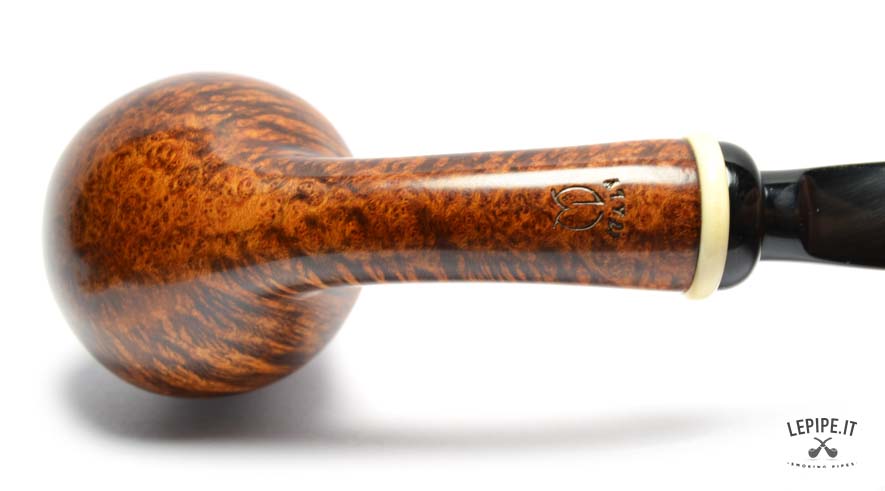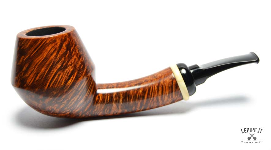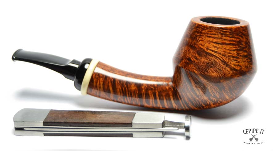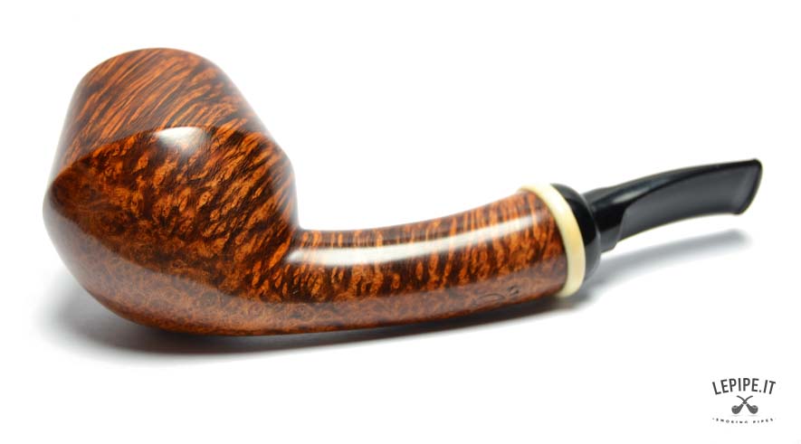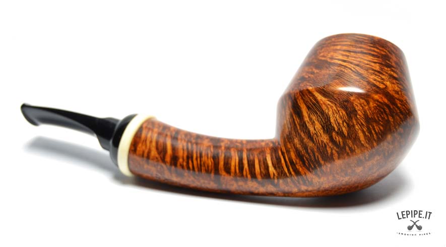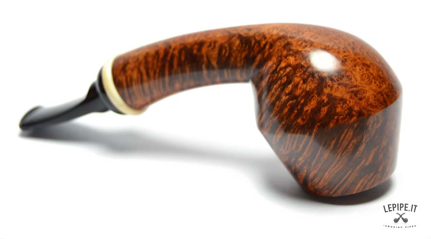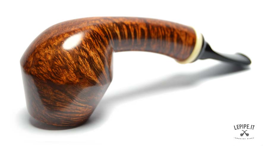 The Rhodesian shape has always carried a strong character, but in the hands of Massimo Damini it gains a new sculptural elegance, balancing tension and softness. This interpretation stands out for its perfectly curved shank and bold bowl profile, made even more expressive by the vibrant diagonal flame grain running across the briar.