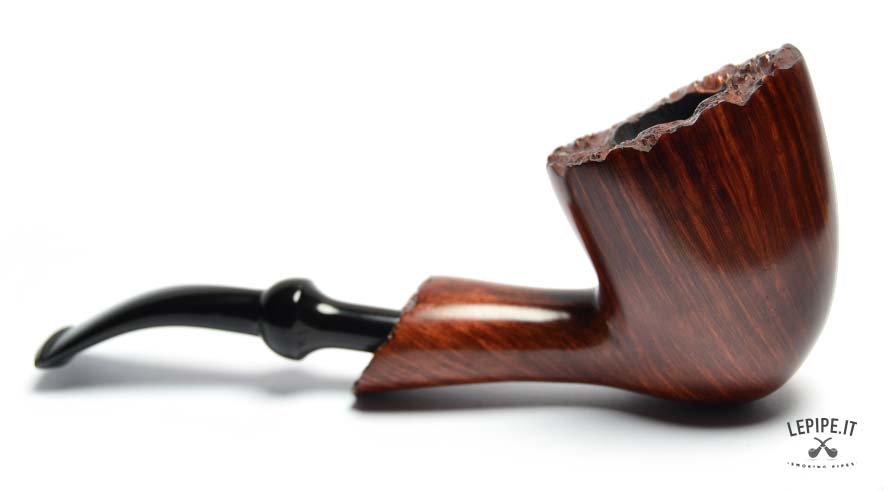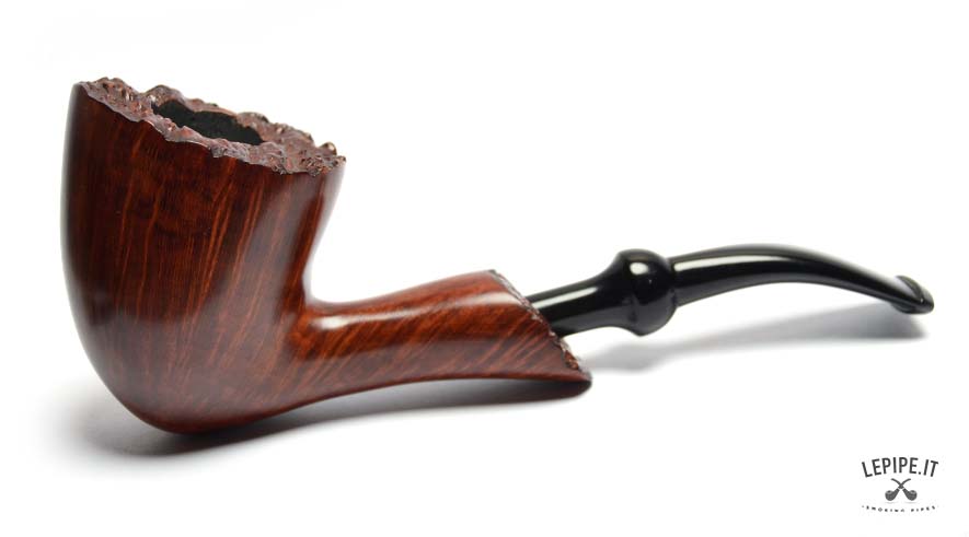 This Bogni pipe is a perfect example of compact elegance. The tall, precisely carved bowl is enhanced by a natural plateau rim that adds both character and uniqueness. Its Freeform shape features smooth, flowing lines, making it visually appealing and comfortable in the hand.
