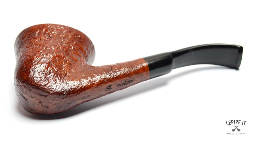 This sandblasted Bogni pipe blends classic inspiration with unique character. The Bent Dublin shape emphasizes the graceful curvature, while the deep sandblasting highlights the natural grain of the briar, offering a highly pleasing tactile and visual experience.