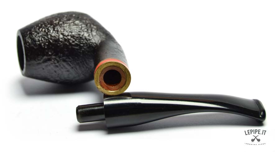 The ebonite stem, classic and functional, is accented by a subtle decorative band that adds refinement without disrupting the harmony of the design. A pipe designed for those who value artisan craftsmanship, traditional shapes and a strong yet elegant sandblasted finish.