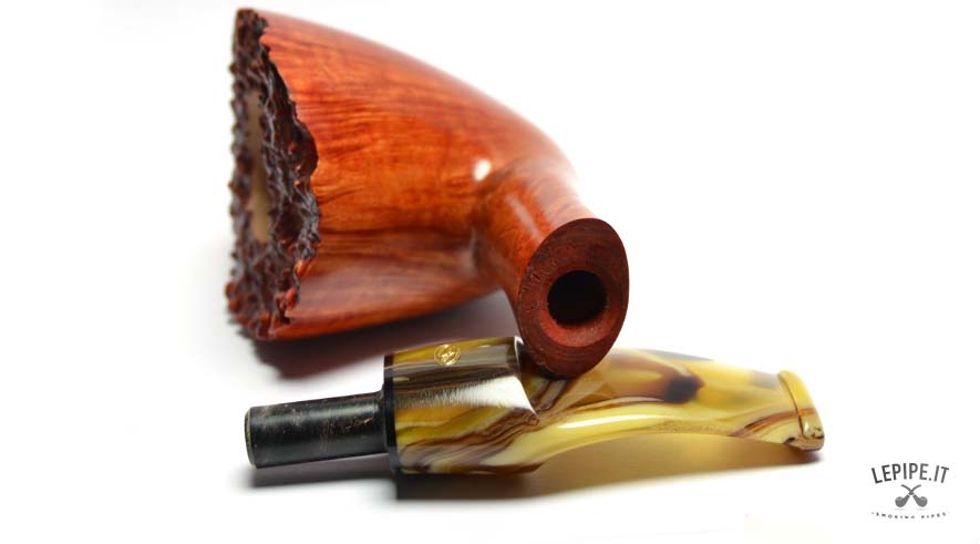 The light marbled stem adds personality and elegance to the overall design. This pipe fully reflects the Gasparini philosophy: Italian artisan craftsmanship, respect for the material, and careful attention to detail, resulting in a pipe designed for an enjoyable and thoughtful smoking experience.