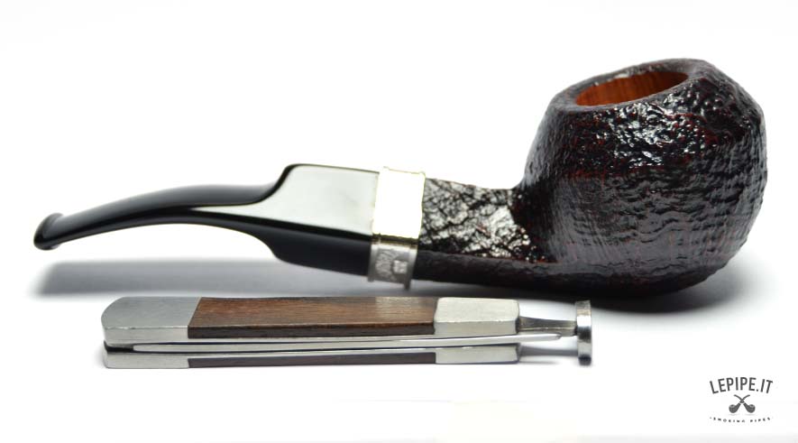 It features a bent Bulldog design with a diamond-shaped bowl and a square shank, elements that give the pipe a strong and immediately recognizable identity. The sandblasted finish enhances the natural structure of the briar, adding depth and character.