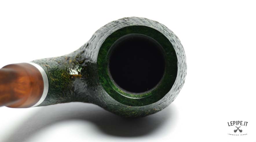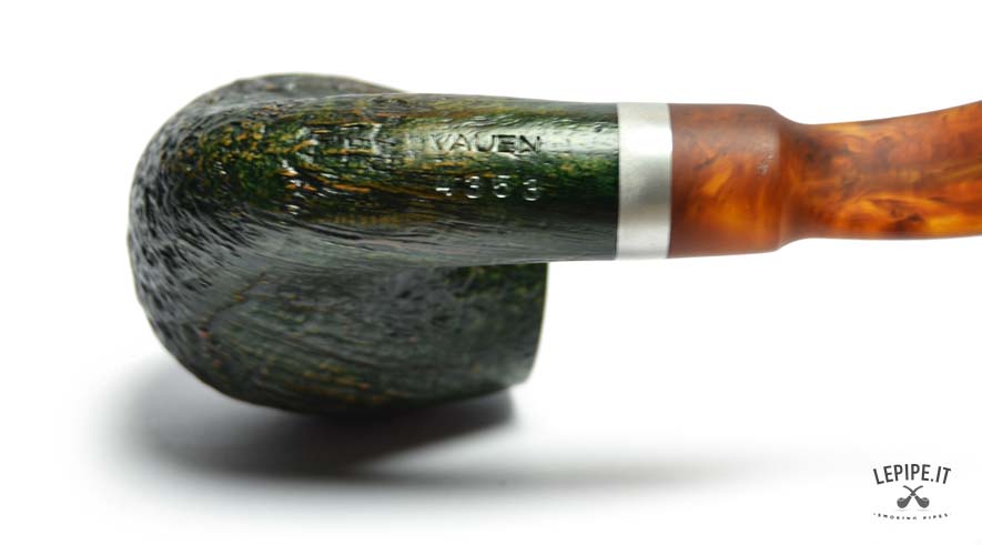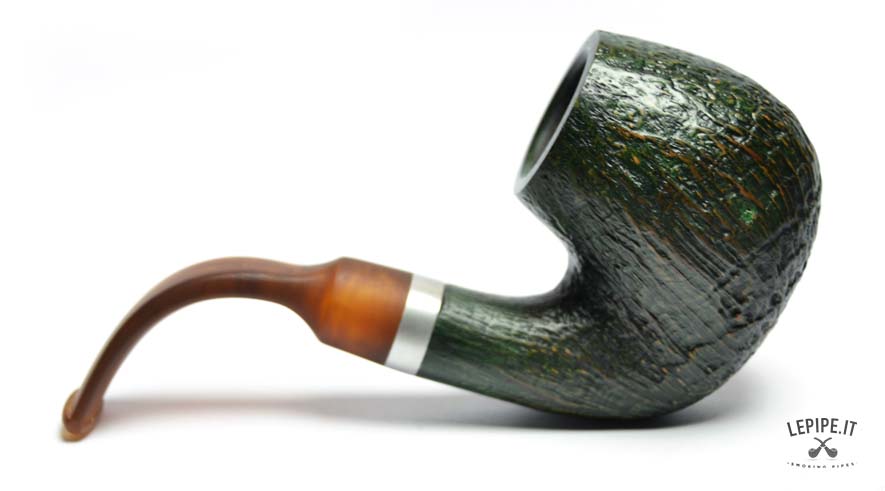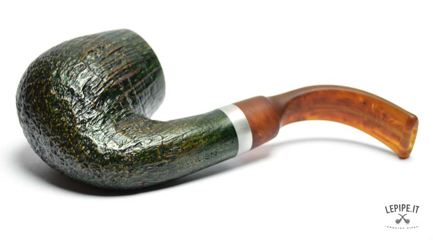 La pipa Vauen Ranger modello 4335 è una classica Oom Paul in radica sabbiata, con finitura verde scura che esalta la struttura del legno e dona profondità visiva alla superficie. La forma completamente curva offre un’ottima ergonomia, pensata per una fumata rilassata e prolungata, ideale anche in presa a mano.