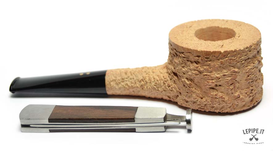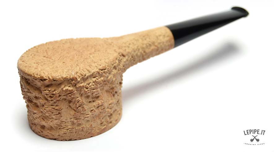 La particolare lavorazione della superficie esalta la rusticità materica del legno, creando un affascinante gioco di texture. La forma Stand-Up garantisce stabilità grazie alla base piatta, pratica per appoggiare la pipa tra una fumata e l’altra.
