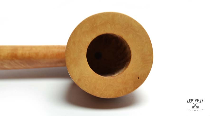 This Bacigalupi pipe in the classic Dublin shape embodies refined simplicity and perfect balance. Made from high-quality, light-colored briar, the smooth, natural finish enhances the grain of the wood, giving the pipe a timeless and understated elegance. The tapered silhouette of the Dublin bowl, elegant and well-balanced, reflects Marco Bacigalupi’s craftsmanship and his signature drilling technique: the airway is placed lower in the shank to align with the center of the bowl, promoting even combustion and optimal cake formation. The handmade ebonite stem integrates seamlessly with the overall design, providing a soft bite and excellent comfort while smoking. The engraved marking 2 Ancore confirms its unique place in the artisan’s yearly production. A genuine, essential piece, meticulously crafted in every detail.