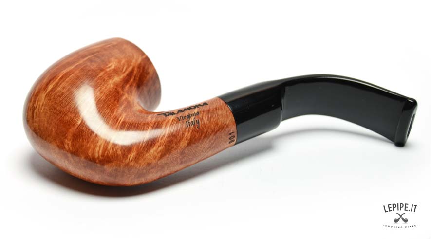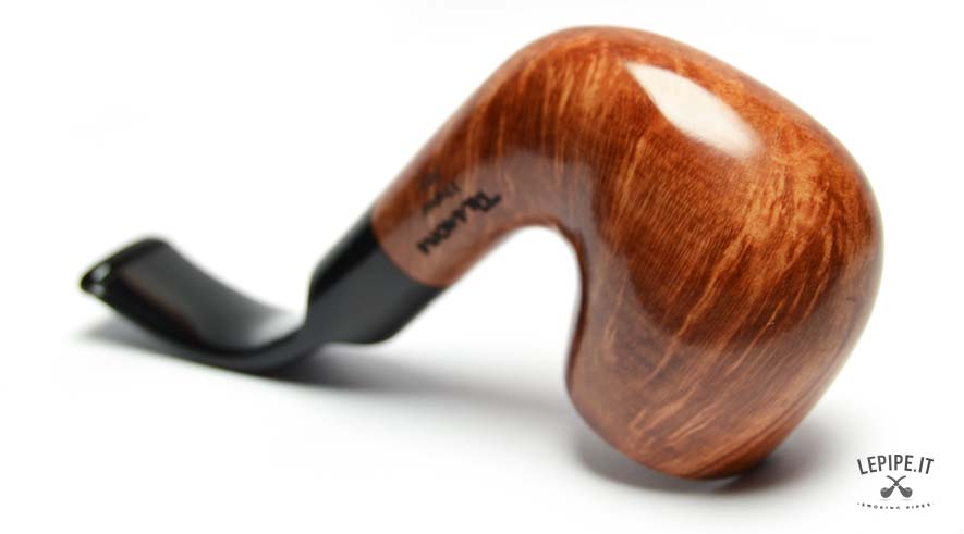 This Talamona pipe in the distinctive Oom Paul shape stands out for its bold presence and ergonomic design, crafted for a relaxed and comfortable smoke. The bowl stands 48 mm tall and is well balanced against the overall length of 135 mm, while the weight of 51 grams offers a solid feel without being too heavy. The smooth finish enhances the striking flame grain of the briar, brought to life by its warm, natural hue. The fully bent shank flows seamlessly into the black acrylic stem, providing a natural and stable grip, ideal even for hands-free smoking. The precisely fitted acrylic tenon ensures a durable and secure connection. This is a pipe for true enthusiasts, combining classic style and reliable function—perfect for those seeking a long, comfortable smoke with a pipe full of personality.