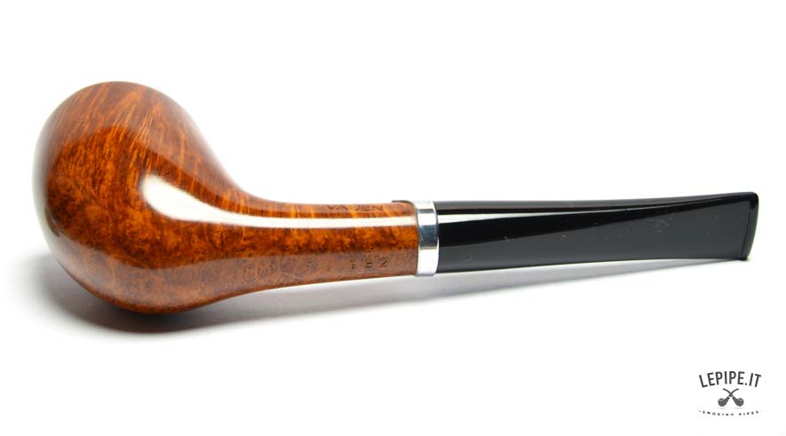The Vauen Finn pipe, model 192, features a distinctive Tulip shape, with a tall, gently flared bowl that evokes the elegant profile of the flower it's named after. Made from smooth briar with a natural finish, it showcases vibrant flame grain, a result of careful wood selection.