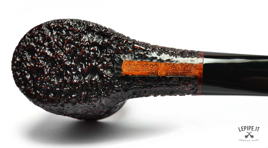 Compact, sturdy, and full of character, this Radice pipe is a refined take on the classic Pot shape. The deep dark rustication gives the briar a bold texture, while both the rim and the end of the shank are left smooth, creating a tasteful contrast of finishes.