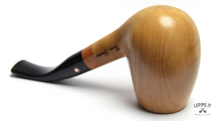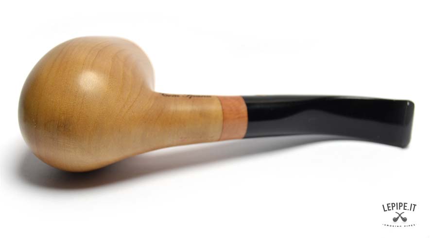 This refined Spanu pipe in the classic Bent Egg shape is crafted from premium olive wood, a rare and captivating material that brings a distinctly Mediterranean character. The smooth, satin-finished surface highlights the natural grain of the wood, creating warm, soft reflections that make each piece truly unique. The curved, egg-like bowl fits comfortably in the hand and ensures even heat distribution while smoking. The slightly bent black acrylic stem blends seamlessly with the overall design, providing both elegance and ergonomic balance. This pipe is filter-free, offering a direct and robust smoking experience—perfect for seasoned enthusiasts. A sober yet sophisticated creation that celebrates the purity of natural materials and the excellence of Sardinian craftsmanship.