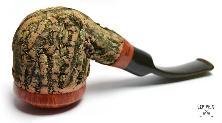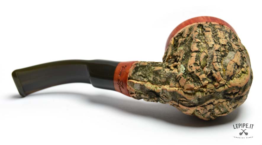 This Spanu pipe in the refined Bent Billiard shape, with a practical Stand-Up base, perfectly blends functionality, aesthetics, and tradition. Made from high-quality Italian briar and coated with genuine Sardinian cork, it stands out for its natural, textured look reminiscent of Mediterranean tree bark. The cork is not just a striking design element but also highly functional: thanks to its insulating properties, it prevents the pipe from getting too hot in your hands, enhancing the overall smoking experience. The exposed sections of polished briar, visible at the top of the bowl and around the shank, create a refined contrast with the rustic cork surface. The curved black acrylic stem integrates seamlessly into the design and houses a 9 mm filter, ensuring a cooler, smoother smoke. The flat base allows the pipe to stand on its own, making it both functional and ideal for display. A unique and character-rich piece that reflects the soul of Sardinia and the excellence of Italian craftsmanship.