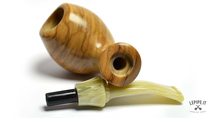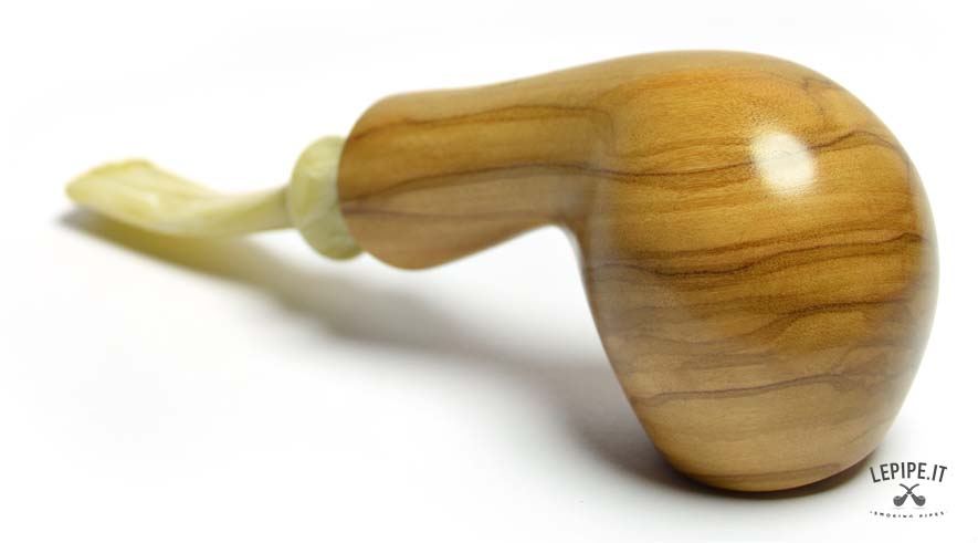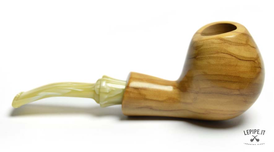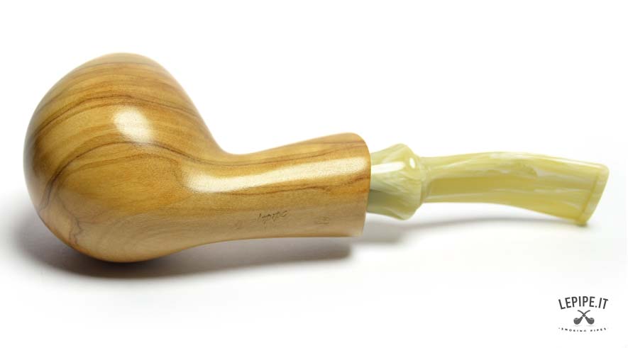 A rare and captivating piece, this Bent Egg pipe made from olive wood stands out for its natural elegance and smooth, warm appearance. The soft grain of the olive wood, with golden tones and amber streaks, creates a visually dynamic yet harmonious surface. The full, rounded Egg shape ensures a comfortable and well-balanced grip, while the light-toned methacrylate stem, sculpted with a gentle twist, adds a bright and graceful finish. A lightweight and refined pipe, perfect for those seeking an original and natural alternative to traditional briar.