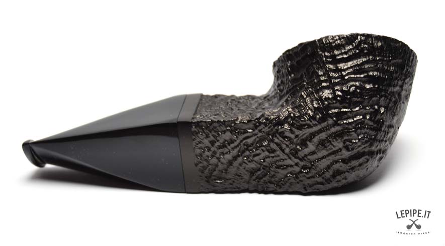 This pipe by Talamona is a bold reinterpretation of the classic Bulldog shape, enhanced by a Reverse Calabash construction that elevates both its functionality and smoking experience. The bowl, crafted from deeply rusticated dark briar, displays the iconic diamond profile that gives the pipe a distinctive geometric strength and strong visual identity. The clean, uninterrupted lines of the bowl emphasize a contemporary take on the Bulldog silhouette, while the square shank adds solidity and a modern edge. The Reverse Calabash system, discreetly integrated into the structure, introduces an expansion chamber that cools and dries the smoke, offering a smoother and more refined aromatic experience. The black acrylic stem, also squared to match the overall aesthetic, connects seamlessly to the shank, completing a pipe designed for those who value bold shapes, artisanal detail, and high-performance smoking.