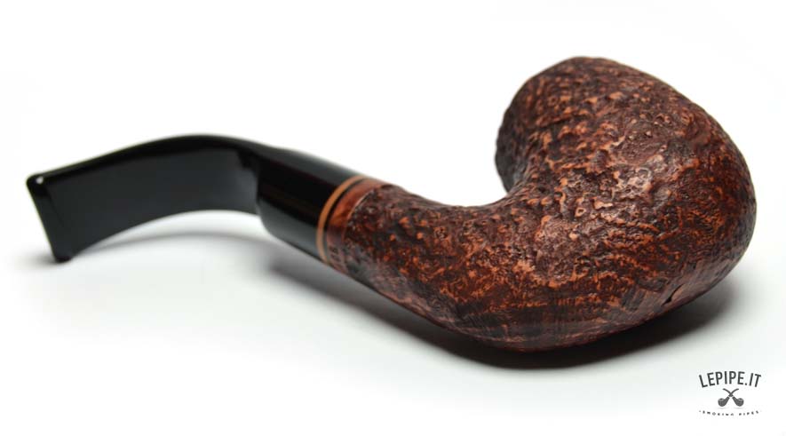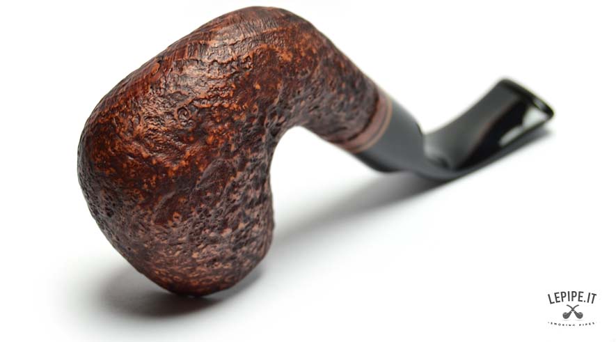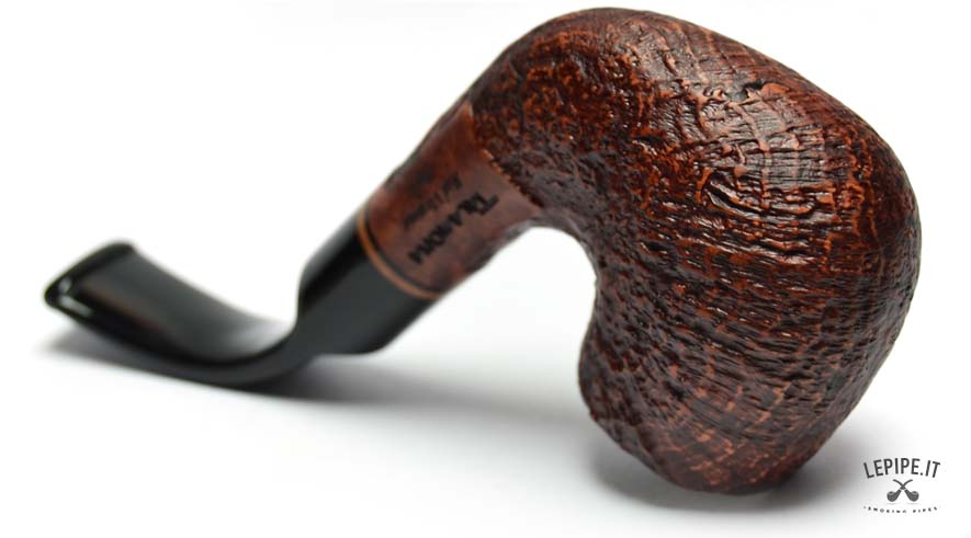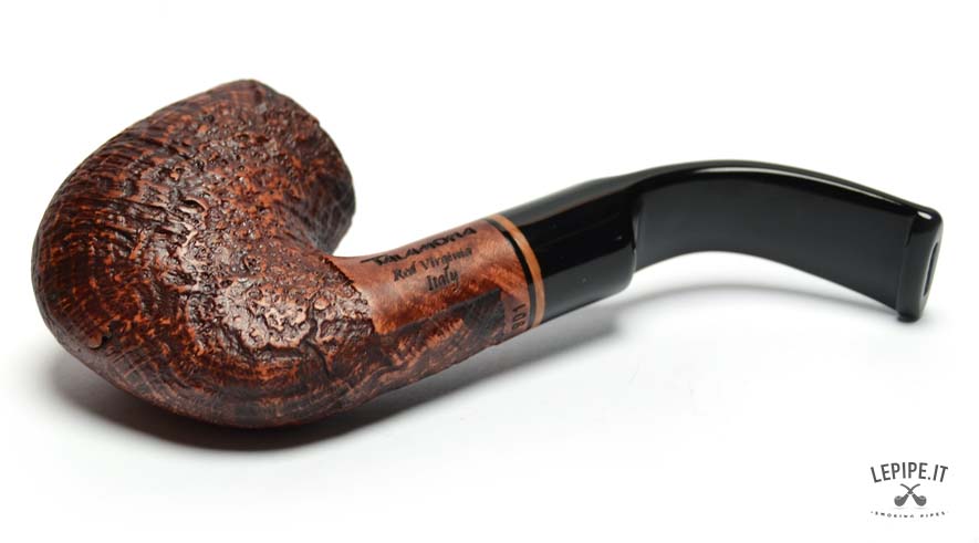 This Talamona pipe from the Red Virginia series offers a bold interpretation of the classic Oom Paul shape, renowned for its ergonomic design and comfortable smoking experience. The large, fully bent bowl features a deep sandblasted finish that highlights the natural grain of the briar, giving the piece a strong and textured character. Its warm, reddish-brown stain is accented by a decorative wooden ring that provides a refined visual contrast between the shank and the stem. The curved black acrylic stem ensures a secure and comfortable grip, ideal for extended, hands-free smoking sessions. With no filter, this pipe delivers a full and natural draw, appealing to experienced smokers who appreciate an unfiltered, authentic experience. A pipe that blends bold character, practical design, and the unmistakable style of traditional Italian craftsmanship.