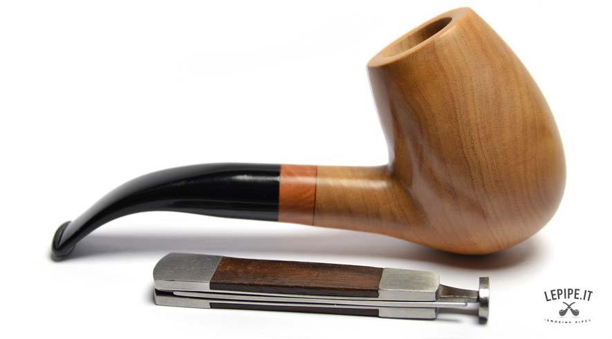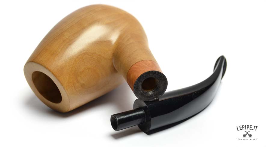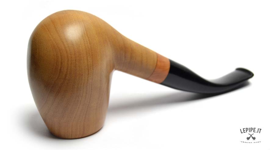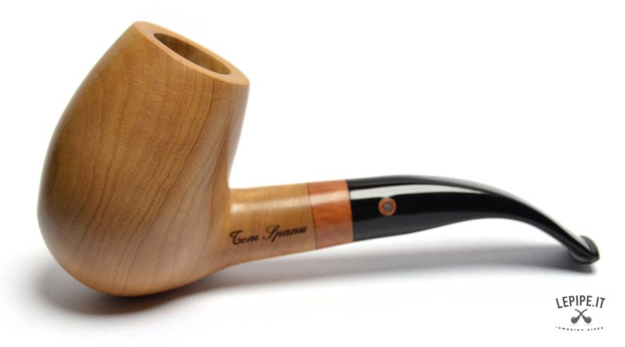 This refined Spanu pipe in the classic Bent Egg shape is crafted from premium olive wood, a rare and captivating material that brings a distinctly Mediterranean character. The smooth, satin-finished surface highlights the natural grain of the wood, creating warm, soft reflections that make each piece truly unique. The curved, egg-like bowl fits comfortably in the hand and ensures even heat distribution while smoking. The slightly bent black acrylic stem blends seamlessly with the overall design, providing both elegance and ergonomic balance. This pipe is filter-free, offering a direct and robust smoking experience—perfect for seasoned enthusiasts. A sober yet sophisticated creation that celebrates the purity of natural materials and the excellence of Sardinian craftsmanship.