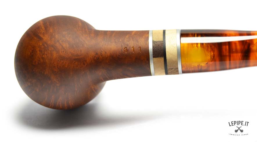 The briar features a matte smooth finish in warm, earthy tones that highlight the fine grain of the wood with understated authenticity. It’s a pipe that radiates comfort and clarity, ideal for lovers of clean lines.