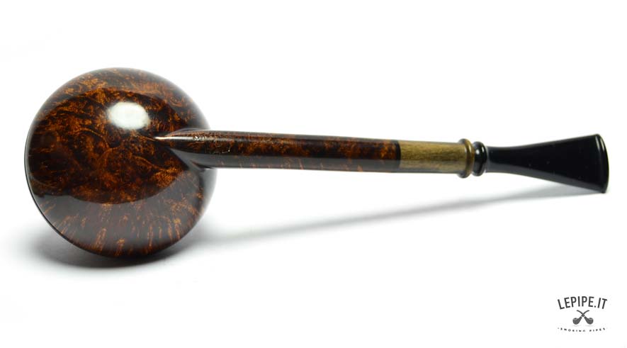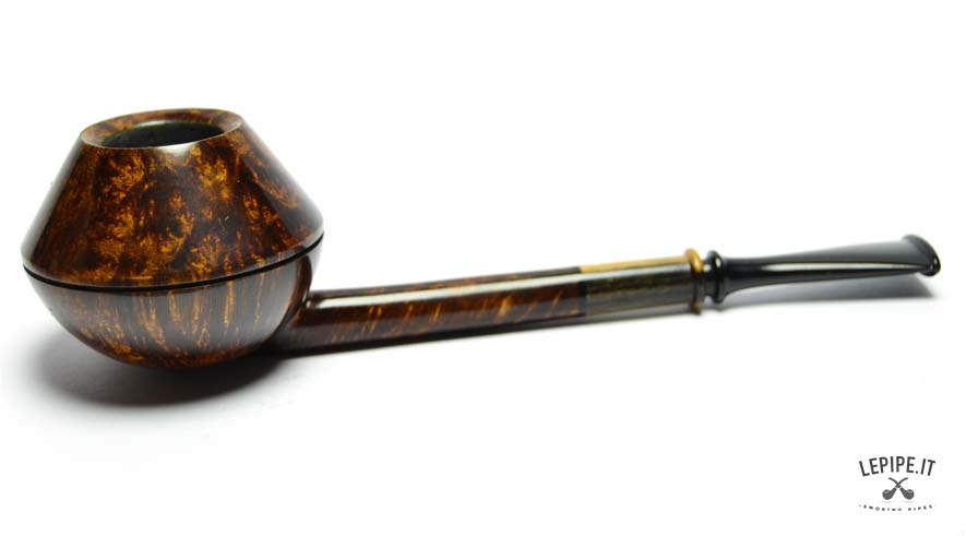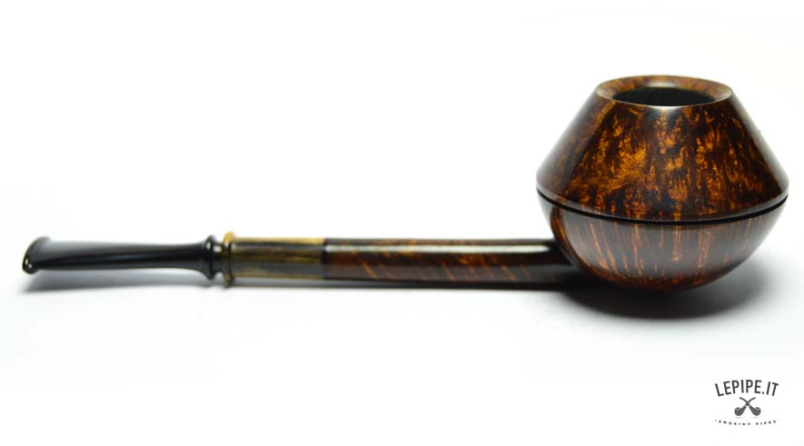 Handcrafted Stand-Up Bulldog Briar Pipe – a true masterpiece of elegance and precision, crafted for the most discerning pipe smoker. Weighing just 35 grams, this pipe showcases a bold interpretation of the classic Bulldog shape, reimagined with sharp, clean lines and perfect balance. Its stand-up design offers both visual impact and functional convenience, allowing the pipe to rest upright without support. The generously sized bowl is carved from high-grade flame grain briar, displaying a mesmerizing pattern of warm amber and deep chocolate hues. The finish is smooth and lustrous, enhancing the natural beauty of the wood. A sleek black ebonite stem is seamlessly connected, with a stylishly shaded accent ring that adds a refined contrast to the overall composition. Every aspect of this piece speaks of superior craftsmanship: from the precise shaping of the bowl to the impeccable sanding and polishing, this pipe exudes luxury, exclusivity, and artisanal finesse. More than a smoking instrument, this is a collector’s item—an expression of timeless style and handmade excellence. Ideal for those who appreciate rare pieces and wish to elevate their rotation with a truly distinguished pipe.