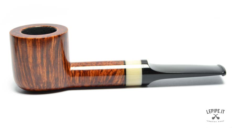 The Pot design, beautifully balanced in its stand-up execution, highlights clean lines and showcases a richly expressive briar grain, with a straight, substantial profile that invites quiet contemplation. The ebonite stem, handcrafted and seamlessly integrated into the shank, provides a pleasing tactile feel and comfortable grip during the smoke, while the 29 grams of weight make this pipe feather-light yet perfectly poised.