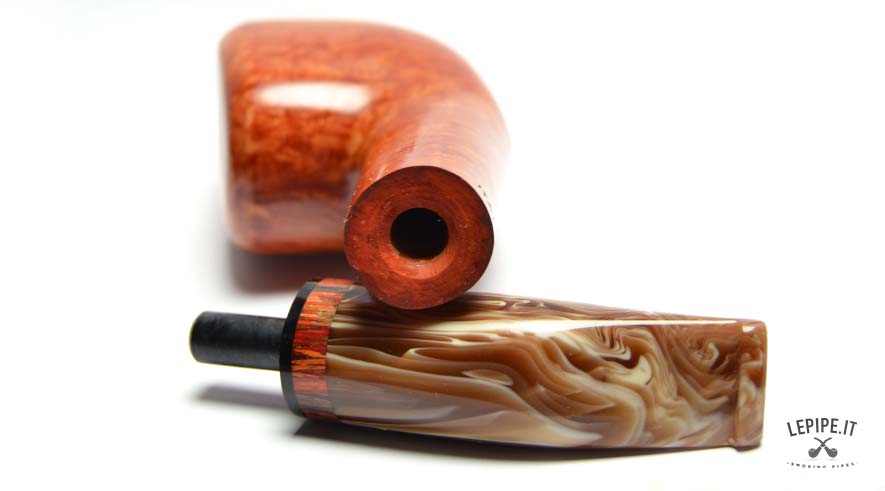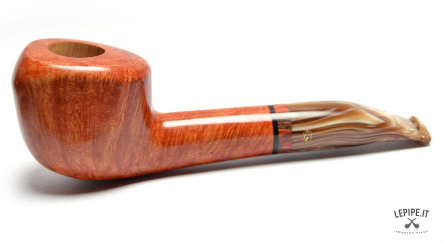The marbled stem adds personality and balances elegantly with the briar bowl, completing the pipe with refinement. This piece fully reflects the Gasparini philosophy: Italian artisan craftsmanship, respect for the material, and an aesthetic sensibility that results in a truly unique and expressive pipe.