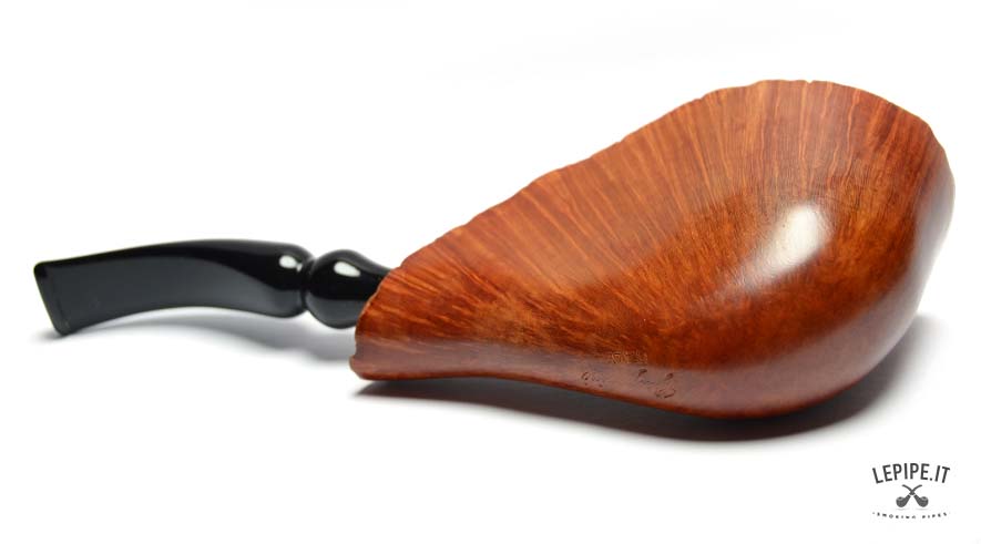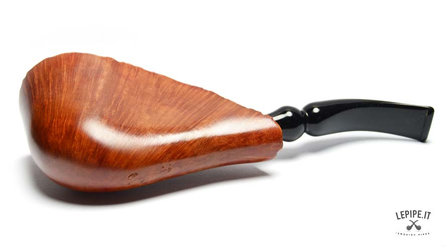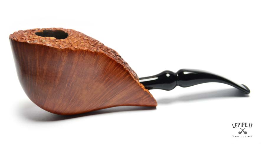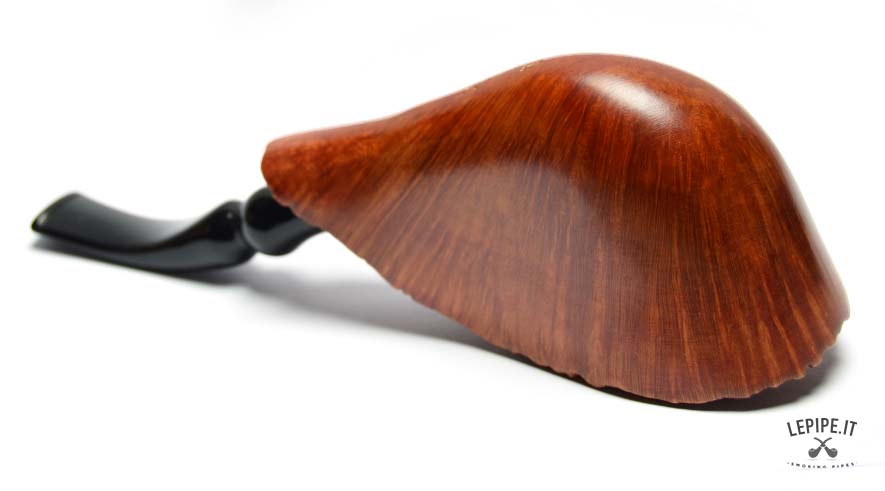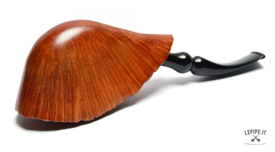 This handcrafted Gasparini Freeform pipe features a highly unconventional design with strong visual impact. Made from briar and finished smooth, it highlights the natural structure of the briar, which radiates along the body of the pipe and enhances its sculptural profile.