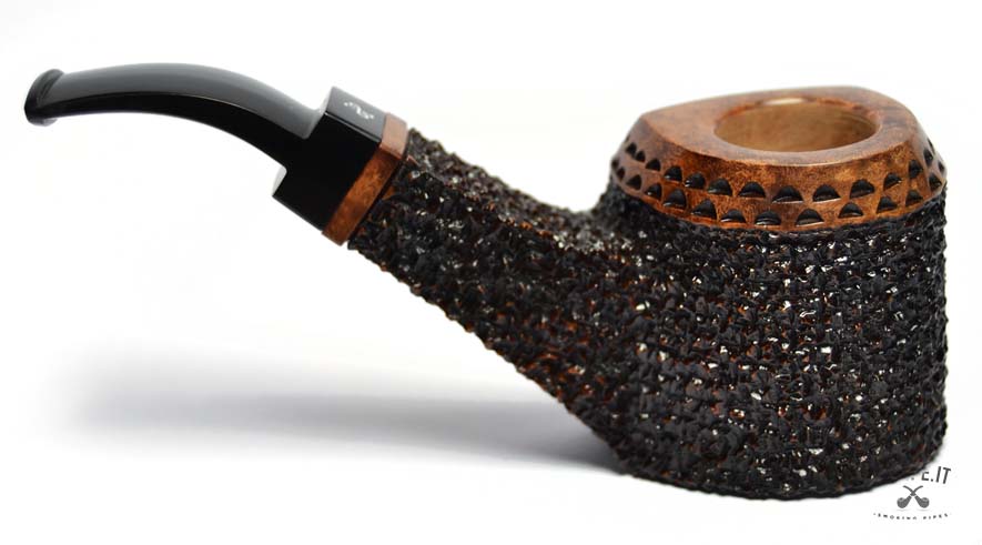 Pipa Posella - Semi Rusticated n. 49 SR - Stand-Up Bocchino in metacrilato Senza filtro Semi rusticata Senza elaborazione Diametro Interno: 20 mm. Diametro Esterno: 38 mm. Lunghezza: 129 mm. Altezza: 45 mm. Peso: 60 gr. Profondità: 34 mm.