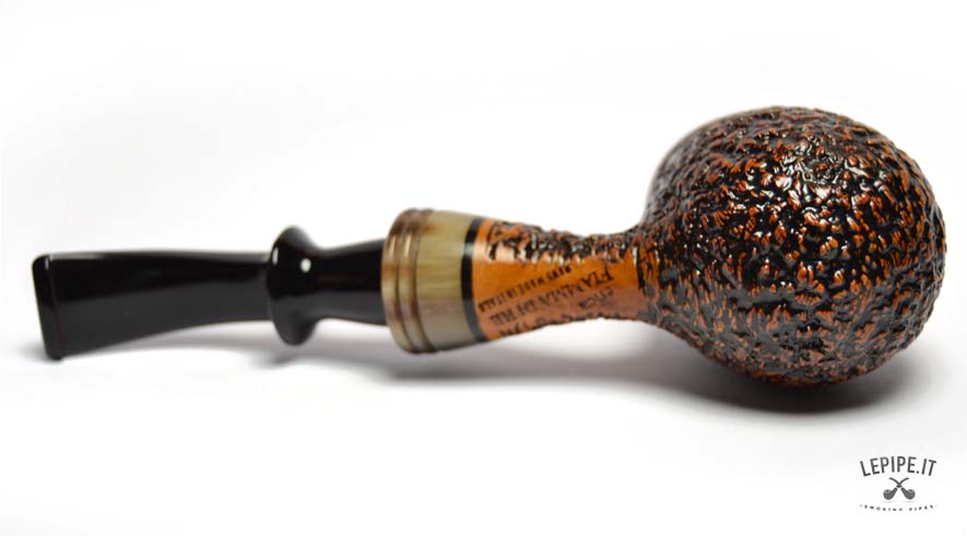 The Fiamma di Re - Erica n. 33 showcases the craftsmanship of Fiamma di Re, a brand known for its attention to detail and dedication to the art of briar carving. This pipe features an acrylic stem and a curved shape reminiscent of the classic Bent Egg. With an internal bowl diameter of 19 mm and a depth of 39 mm, it is perfect for those who enjoy a long, satisfying smoke. Weighing 57 g and standing at 51 mm, it is comfortable to handle and ideal for daily use. The rustic finish adds a distinctive touch, highlighting the passion and skill Fiamma di Re puts into every piece. Priced at €164.00 + VAT, with potential savings of up to €11.48 using loyalty points, this pipe is an excellent choice for those seeking both elegance and functionality.