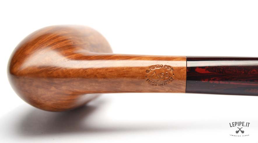 Pipa Giacomo Penzo n. 101  Bocchino in metacrilato Senza filtro Liscia Senza elaborazione Diametro Interno: 19 mm. Diametro Esterno: 36 mm. Lunghezza: 148 mm. Altezza: 57 mm. Peso: 40 gr. Profondità: 43 mm.