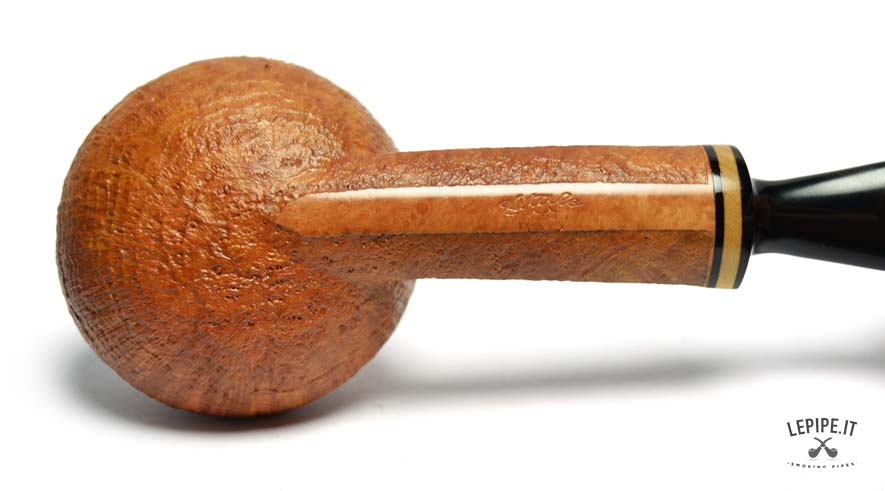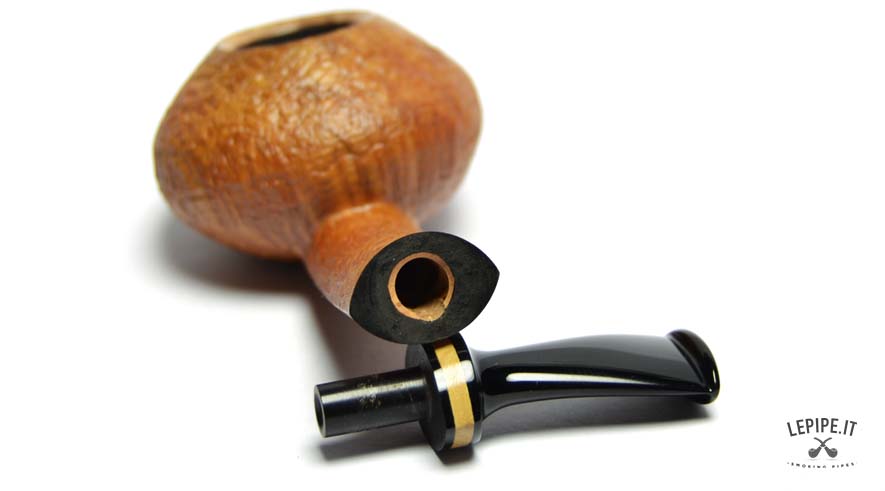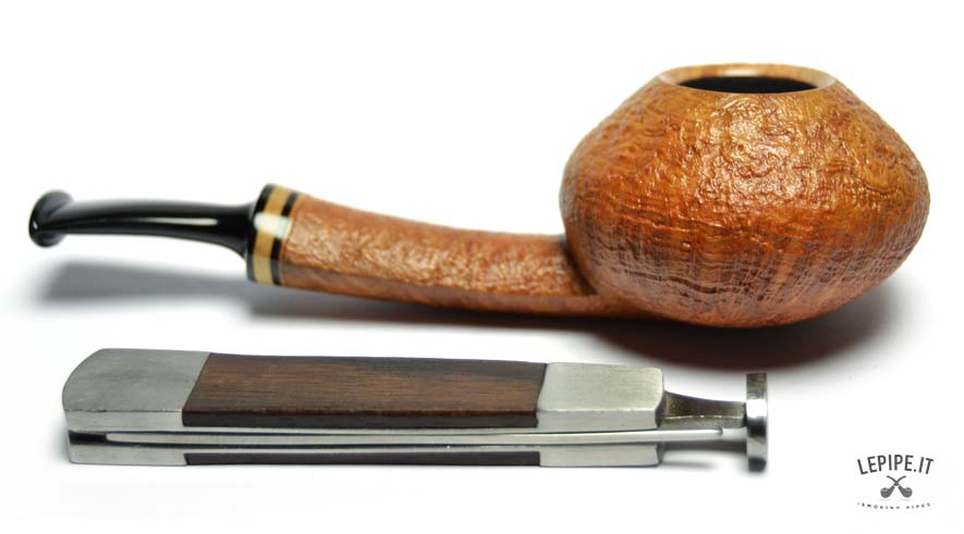 Pipa Vitale - n. 146 Stand-Up Bocchino in ebanite Senza filtro Sabbiata Con altra elaborazione Diametro Interno: 19 mm. Diametro Esterno: 49 mm. Lunghezza: 122 mm. Altezza: 32 mm. Peso: 34 gr. Profondità: 25 mm.