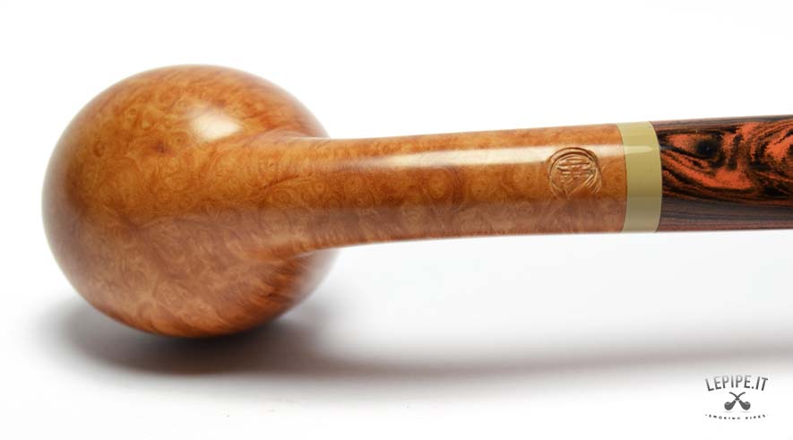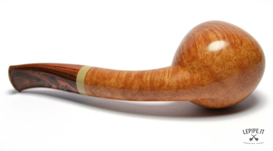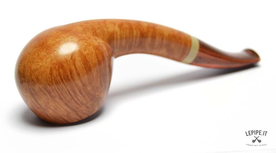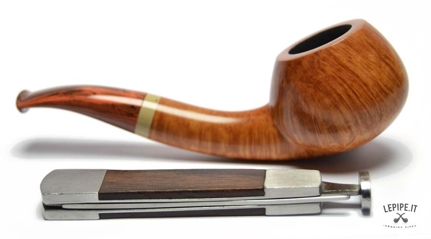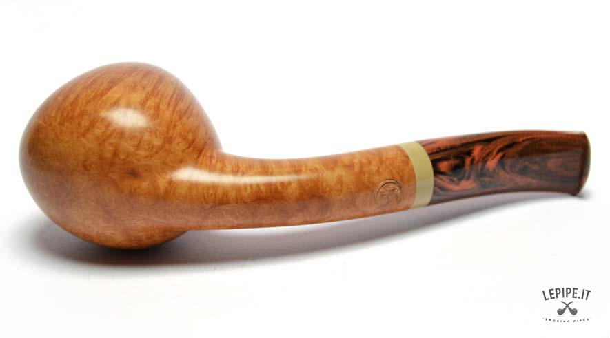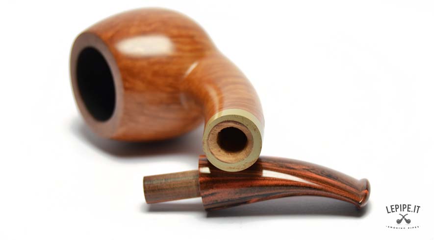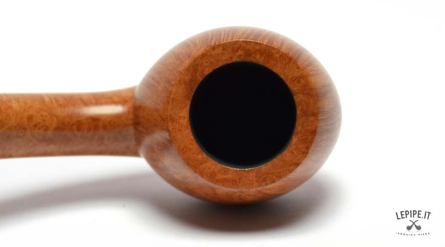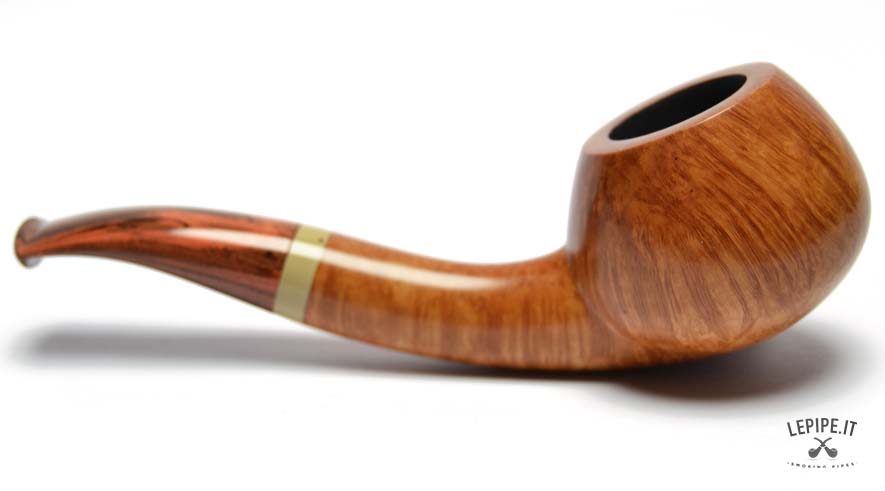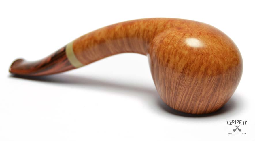 The Alinetu - n. 15 pipe stands out for its smooth lines and the harmonious contrast between the light briar and the dark brown mouthpiece, accented by an elegant ring that adds a touch of refinement. Its curved shape, crafted with meticulous attention to detail, makes this pipe not only a pleasure to smoke but also a piece to admire. The smooth finish highlights the grain of the wood, giving the pipe a natural and elegant character. The slightly curved mouthpiece fits comfortably in the hand and mouth, offering a balanced and enjoyable smoking experience. The decorative ring on the mouthpiece is not just an aesthetic detail but adds an extra element of elegance to the pipe. With a bowl featuring a 19 mm internal diameter, Alinetu - n. 15 is ideal for those seeking a balanced and pleasant smoke, perfect for relaxing and savoring the more subtle flavors of the tobacco. Without a filter, this pipe offers an authentic and refined experience, allowing the tobacco to shine. Cabrini, with his artisanal expertise, transforms each piece of briar into a unique work of art, and Alinetu - n. 15 is a tangible proof of his dedication. Every curve and detail tells a story of passion and devotion to the craft of woodwork.