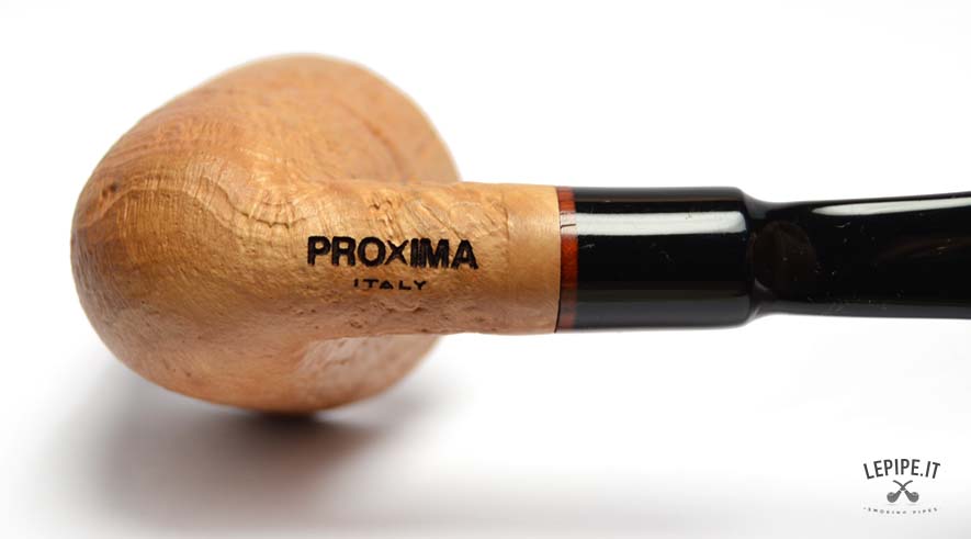 Pipa Proxima - n. 13  Bocchino in metacrilato Senza filtro Sabbiata Con altra elaborazione Diametro Interno: 20 mm. Diametro Esterno: 42 mm. Lunghezza: 123 mm. Altezza: 54 mm. Peso: 45 gr. Profondità: 43 mm.