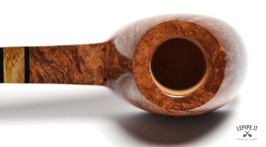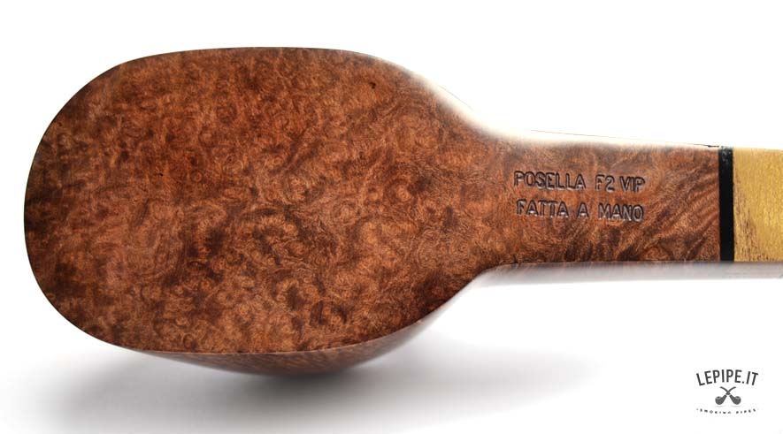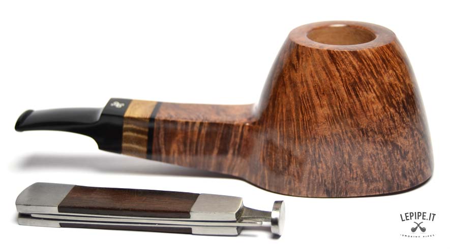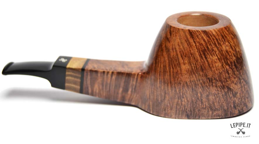 The "F2 VIP - Stand-Up" from the Fiammata series is a majestic pipe, featuring an extraordinary volcanic shape that immediately draws attention. This semi-curved pipe is designed for seasoned smokers who appreciate long, satisfying sessions. The generous 22 mm bowl and impressive 146 mm length make it a true gem among large pipes, offering excellent airflow and a rich smoking experience. Despite its substantial size, the 95 g weight ensures perfect balance, allowing for a comfortable experience. The smooth finish enhances the stunning grain of the carefully selected Calabrian briar, expertly crafted by Vitaliano Posella. Price: €426.00 (+ VAT). You can save up to €29.82 with discount points.