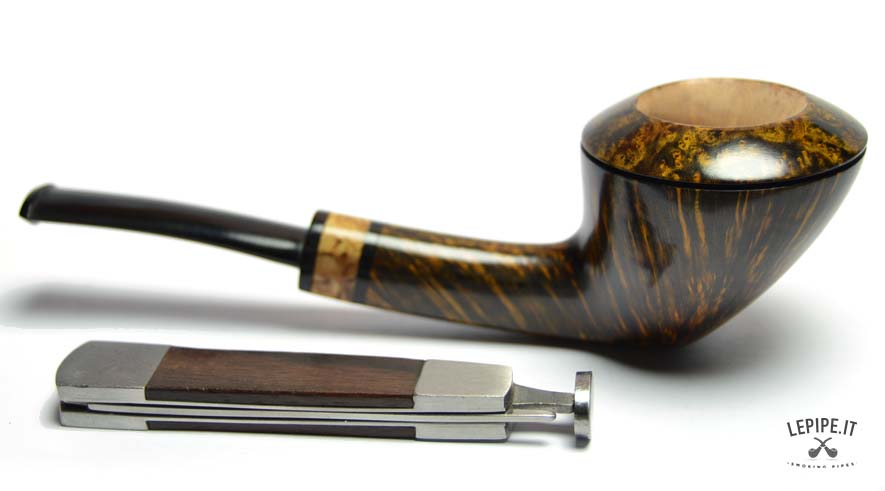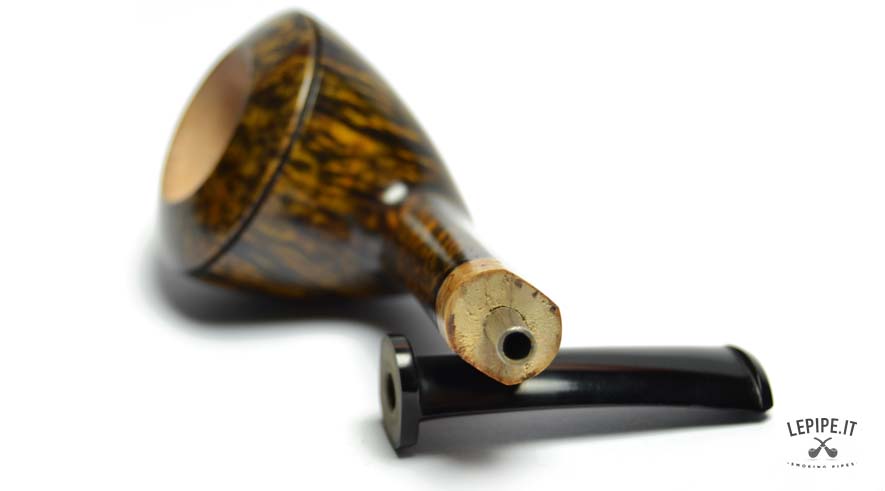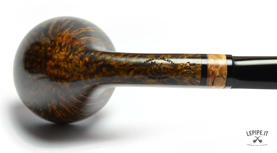 Pipa Regina Scarlatta - n. 106  Bocchino in ebanite Senza filtro Liscia Con altra elaborazione Diametro Interno: 20 mm. Diametro Esterno: 46 mm. Lunghezza: 146 mm. Altezza: 43 mm. Peso: 42 gr. Profondità: 33 mm.