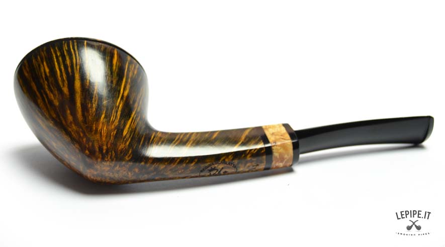 The Regina Scarlatta - n. 106 exemplifies the best of handcrafted Italian pipes, blending Cristian Galeazzi’s innovative artistry with classic Bent Dublin aesthetics. The smooth finish showcases the natural beauty of the briar, selected for its exceptional quality and treated with utmost care. Galeazzi’s years of experience are evident in the precision and elegance of this piece, from the balanced shape to the comfortable ebonite stem. The bowl, measuring 20 mm in diameter and 33 mm in depth, offers ample room for a long and enjoyable smoke. Measuring 146 mm in length and weighing 42 g, this pipe is both practical and sophisticated. The €600.00 + VAT price point, with up to €42.00 in loyalty point savings, reflects the premium craftsmanship and exclusivity that define Regina Scarlatta pipes.