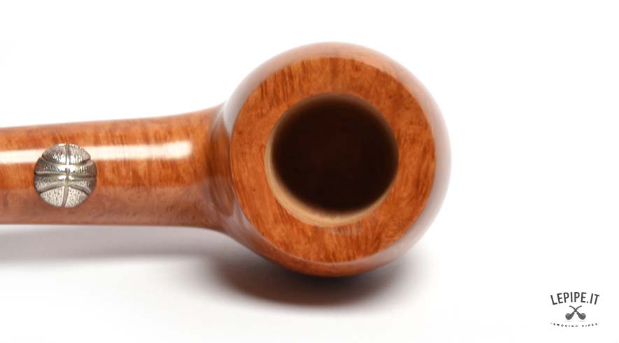 Sport Edition n. 3 6 mm - Basket. Inspired by basketball, this Bent Apple pipe features a 6 mm methacrylate mouthpiece and a 20 mm internal diameter. Its length of 141 mm and balanced weight of 42 grams make it ideal for smokers seeking a dynamic smoke, with a curved shape that reflects the continuous movement of the game.