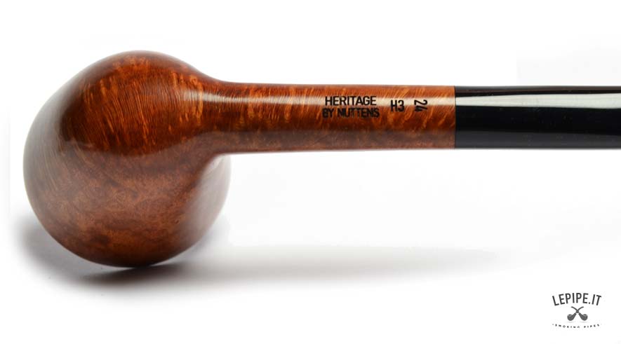 The engraving on the shank, "Heritage by Nuttens H3 24", is a mark of quality and craftsmanship, attesting to the attention to detail in the pipe's construction.