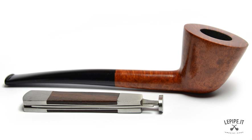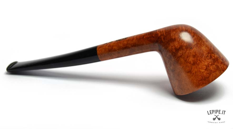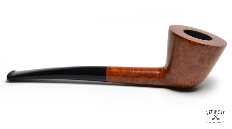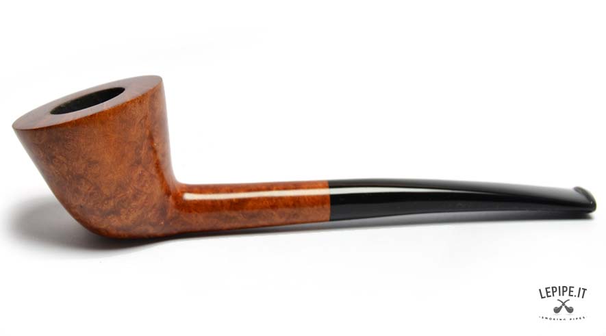 The bowl, tall and slightly flared, typical of the Woodstock shape, ensures an even and consistent burn. Crafted from high-quality briar, the smooth finish highlights the natural beauty of the wood grain, with warm tones and subtle, elegant variations.