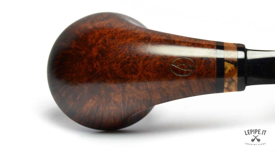 This extraordinary Stand-Up Dublin pipe embodies the essence of artisanal craftsmanship, featuring an elegant shape and perfect functionality. The bowl, characterized by the Dublin shape with a slight upward flare, offers a sophisticated design that enhances the quality of the materials and the artisan's work.