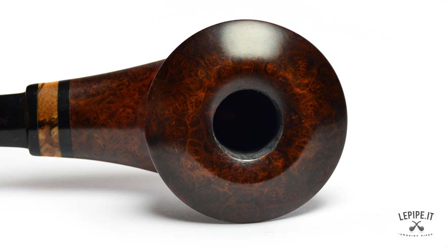 Shank and Mouthpiece: The shank is adorned with a decorative ring combining briarwood and other natural materials, creating an elegant contrast. The black ebonite mouthpiece integrates seamlessly into the design, offering a cool and comfortable smoking experience while ensuring excellent durability over time.