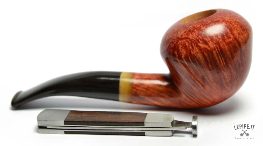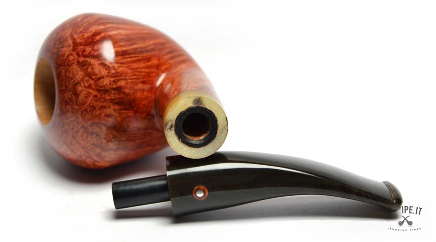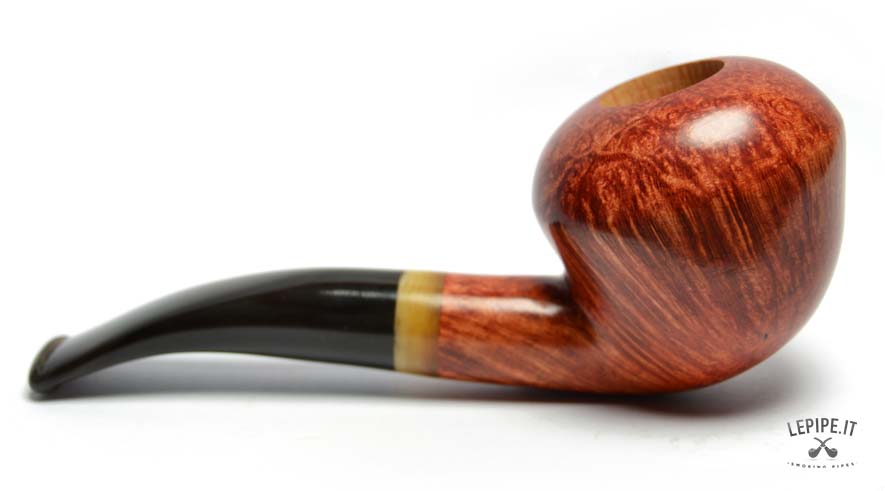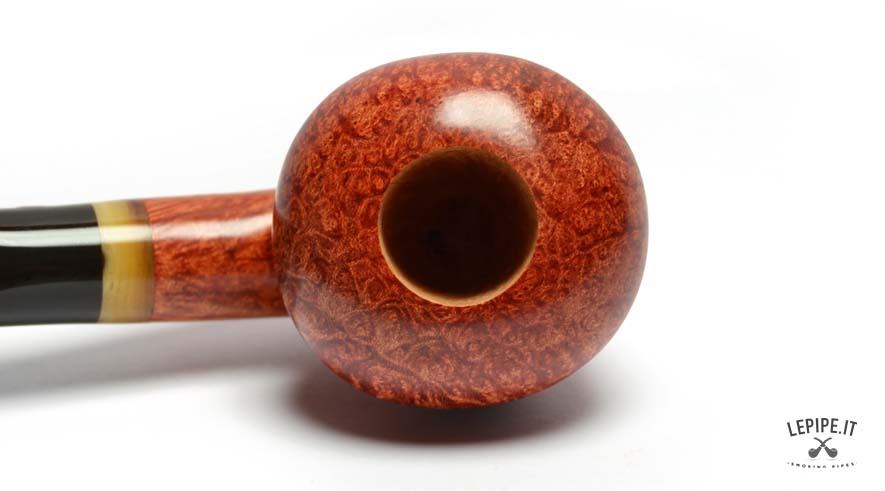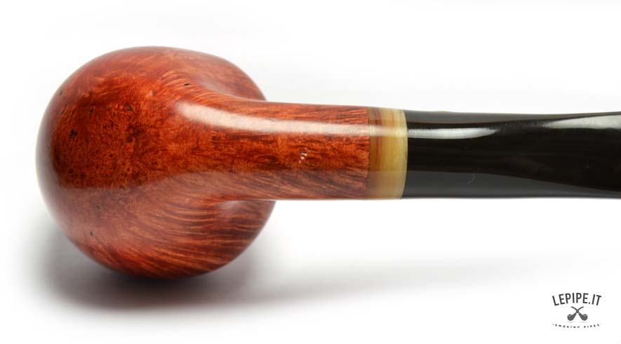 The high-quality briarwood, finished with a smooth polish, highlights the beautiful grain and tones ranging from amber red to deep brown. The polished surface gives the pipe a warm and appealing appearance.