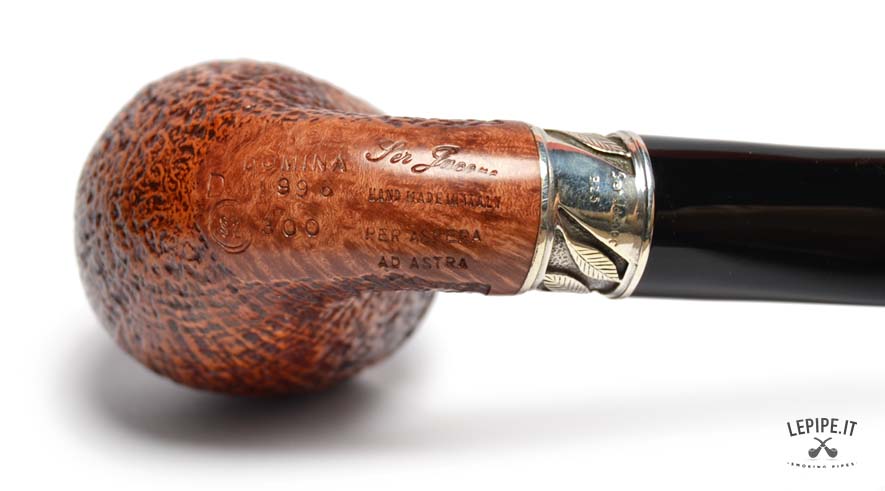 This pipe is part of the prestigious Domina series by Ser Jacopo, a limited collection introduced in 1996 that celebrates the harmonious connection between artisan and smoker, reflecting the trends and preferences of the year. Each year, only 333 numbered pipes are crafted, making each piece highly sought after by collectors. The Domina represents a special moment, transforming the needs and desires of smokers into a celebratory object of great value.