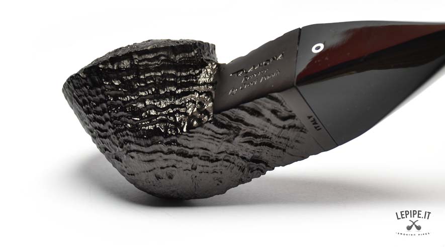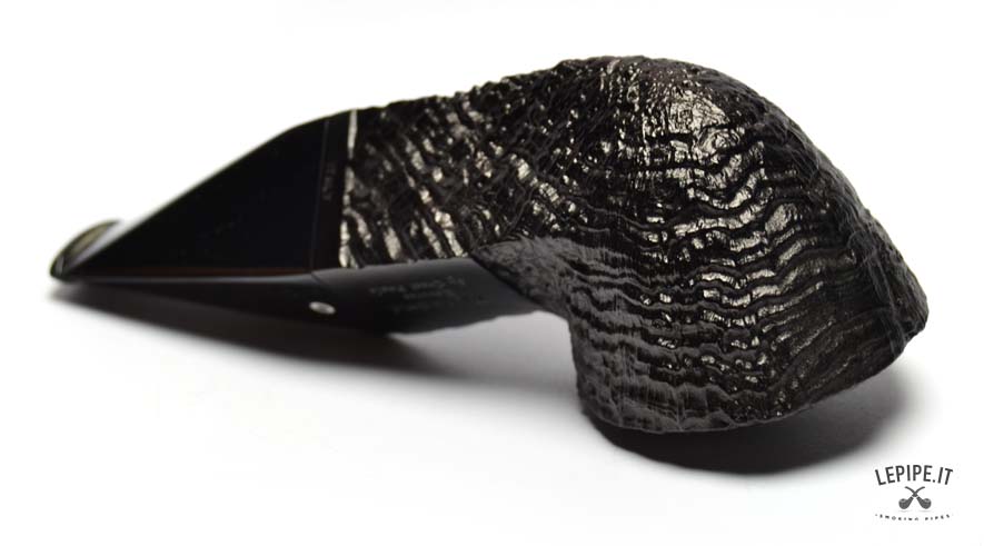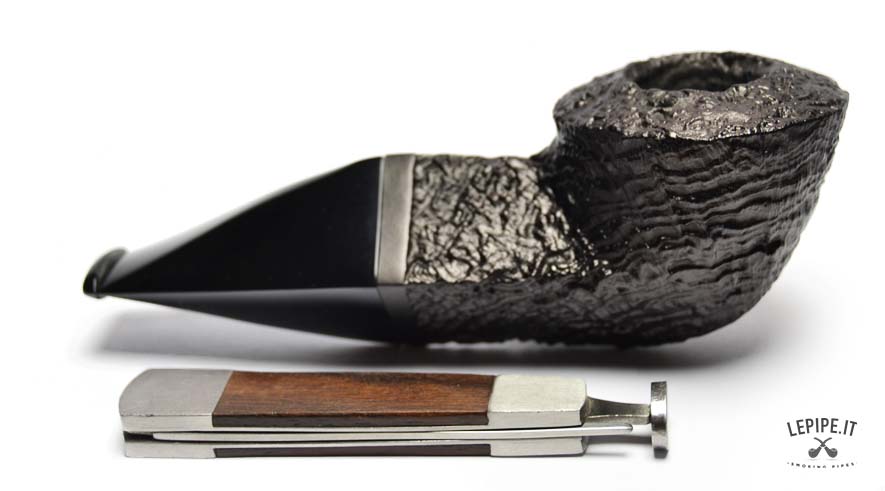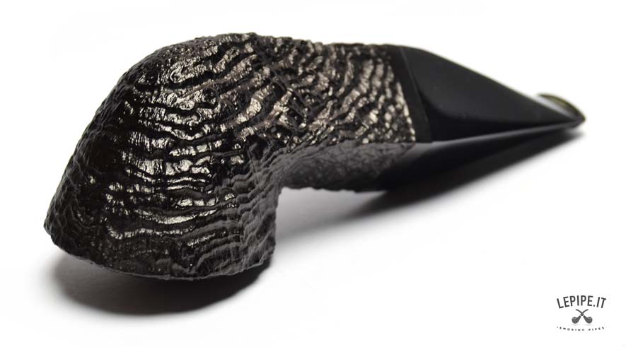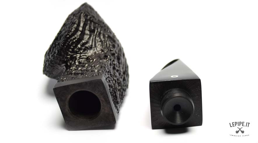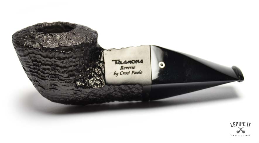 This pipe by Talamona is a bold reinterpretation of the classic Bulldog shape, enhanced by a Reverse Calabash construction that elevates both its functionality and smoking experience. The bowl, crafted from deeply rusticated dark briar, displays the iconic diamond profile that gives the pipe a distinctive geometric strength and strong visual identity. The clean, uninterrupted lines of the bowl emphasize a contemporary take on the Bulldog silhouette, while the square shank adds solidity and a modern edge. The Reverse Calabash system, discreetly integrated into the structure, introduces an expansion chamber that cools and dries the smoke, offering a smoother and more refined aromatic experience. The black acrylic stem, also squared to match the overall aesthetic, connects seamlessly to the shank, completing a pipe designed for those who value bold shapes, artisanal detail, and high-performance smoking.