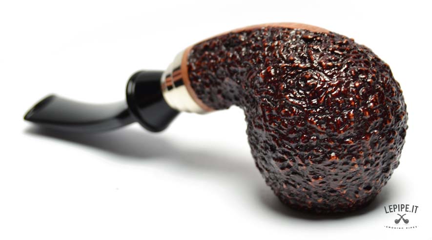 Rinaldo YYY 3 Bent Apple Pipe – Lithos Series: compact, sturdy, and refined — this pipe features a deeply rusticated finish that highlights its bold character.