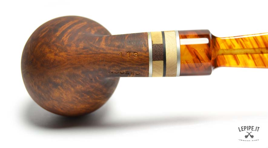 The matte smooth finish enhances the warm tones of the briar, with vertical grain patterns that give each pipe a unique and elegant appearance.