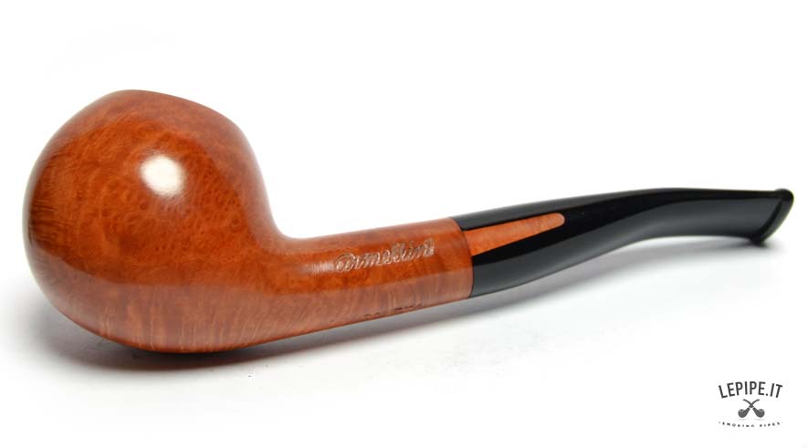 This Armellini pipe features the classic Apple shape, known for its rounded, balanced bowl that provides a comfortable and even smoke. Its compact, curved silhouette makes it perfect for those who enjoy clenching the pipe while reading or walking.