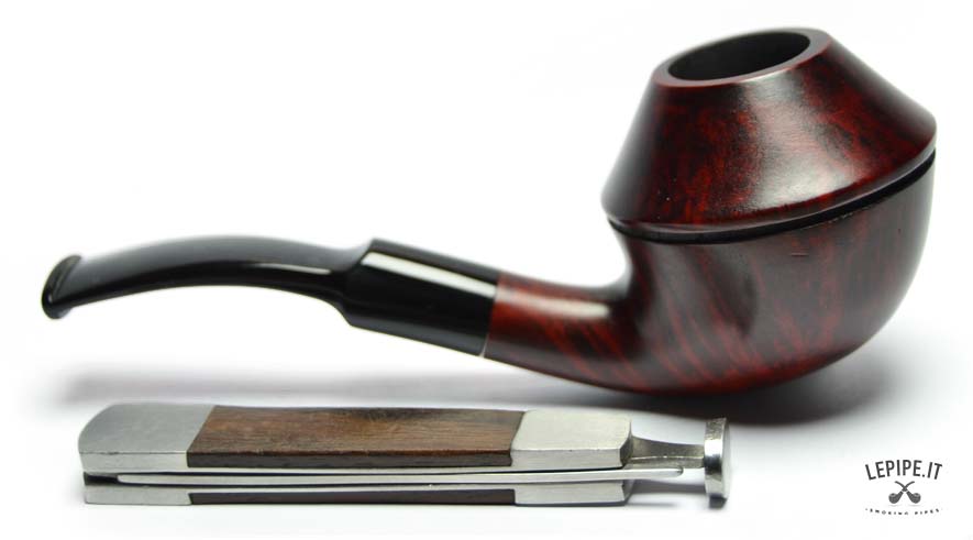 This Rhodesian shape pipe stands out for its distinctive flattened bowl with a double-bead line and a graceful curved profile that adds elegance and dynamism. Measuring 126 mm in length and 45 mm in height, it offers harmonious proportions and a comfortable grip.