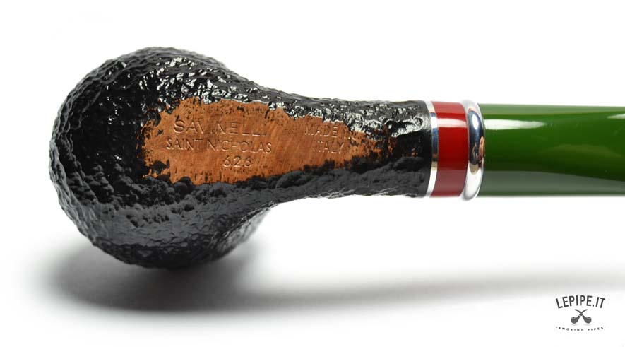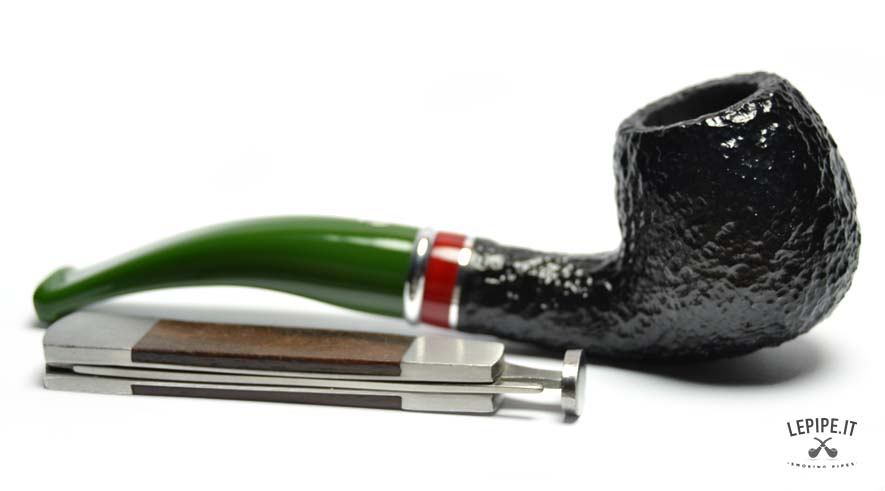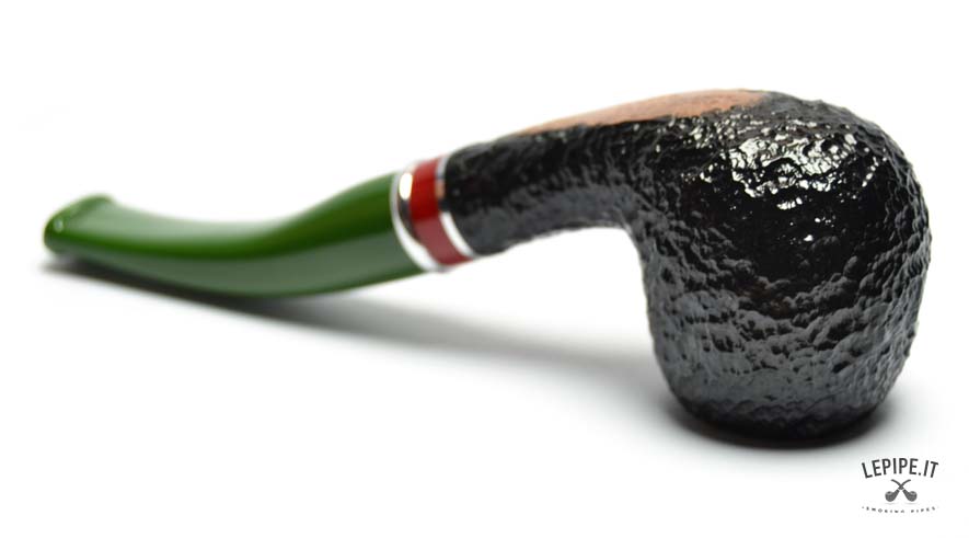 The glossy green acrylic stem is beautifully curved and accented with Savinelli’s signature red and silver Christmas band. The practical Stand-Up design allows the pipe to rest upright on any flat surface.