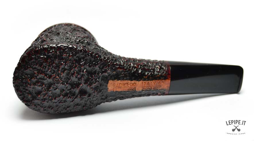 Compact, sturdy, and full of character, this Radice pipe is a refined take on the classic Pot shape. The deep dark rustication gives the briar a bold texture, while both the rim and the end of the shank are left smooth, creating a tasteful contrast of finishes.