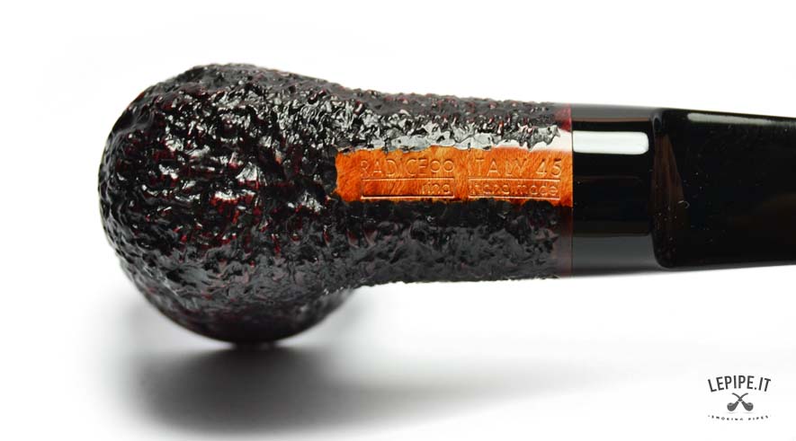This Radice pipe perfectly blends technical innovation with traditional craftsmanship. The classic Dublin shape, with its flared bowl and elegant lines, is paired with the advanced Aero Calabash Reverse system, designed to enhance smoke cooling and dryness through an internal condensation chamber.