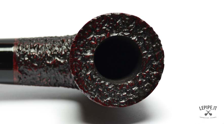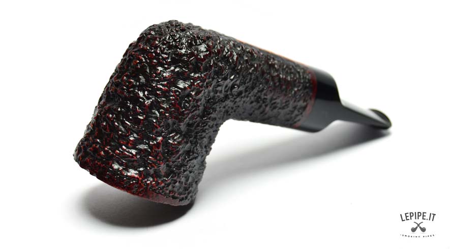 The deeply rusticated finish in dark tones with bordeaux highlights gives the briar a bold, textured appearance, while the Stand-Up design allows the pipe to rest upright, making it ideal for both daily use and stylish display.